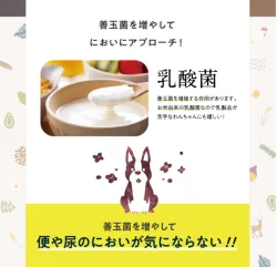 このこのごはんを食べるようになってから、便のにおいが全く気にならなくなり、室内でされても、部屋がくさくないので、とても感激しました。 よく食べてくれるので、健康面でも、とても満足しています!!