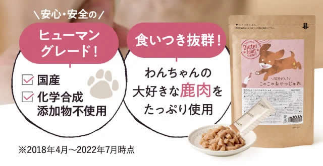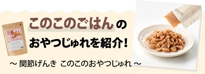 関節げんきこのこのおやつじゅれは、関節保護成分を含んだヘルシーなおやつです。