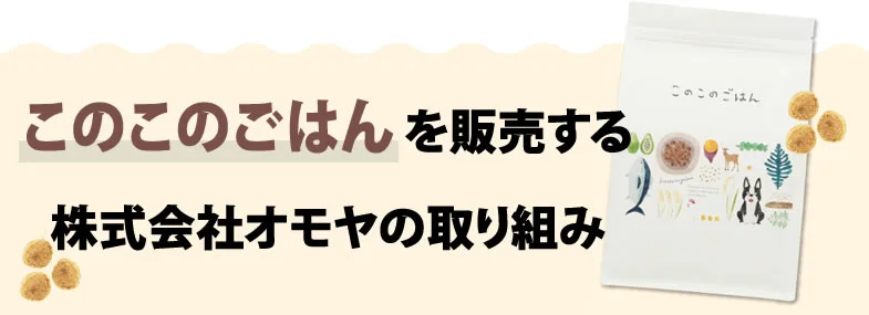 このこのごはんは「コノコトトモニ」ブランドのドッグフードであり、製造販売を行なっているのはペット食品や関連商品を取り扱う株式会社オモヤです。