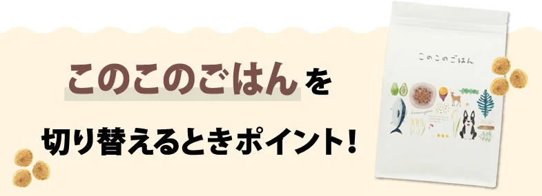 今使っているフードからこのこのごはんに切り替える際には、最低10日間ほどかけて徐々に慣らしていきましょう!