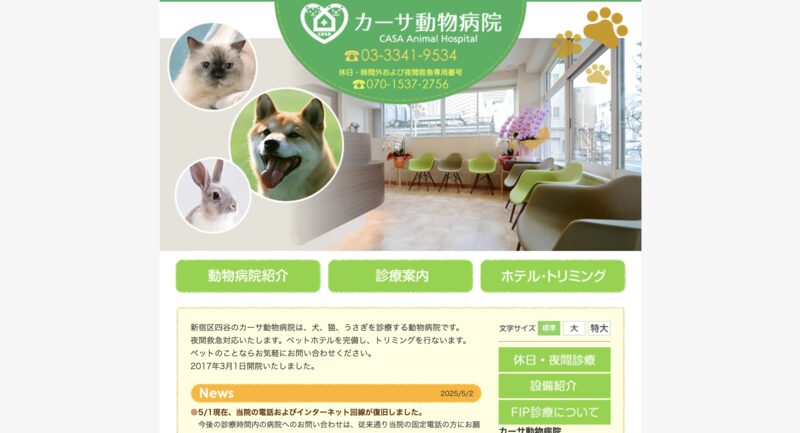 診療対象猫、犬、うさぎ、ハムスター、フェレット、リス、ミーアキャット、鳥、その他小動物