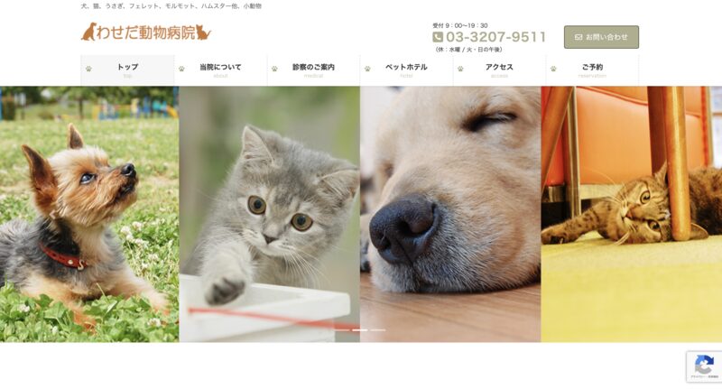 診療対象犬、猫、小型哺乳類、両生類、爬虫類、エキゾチックアニマル